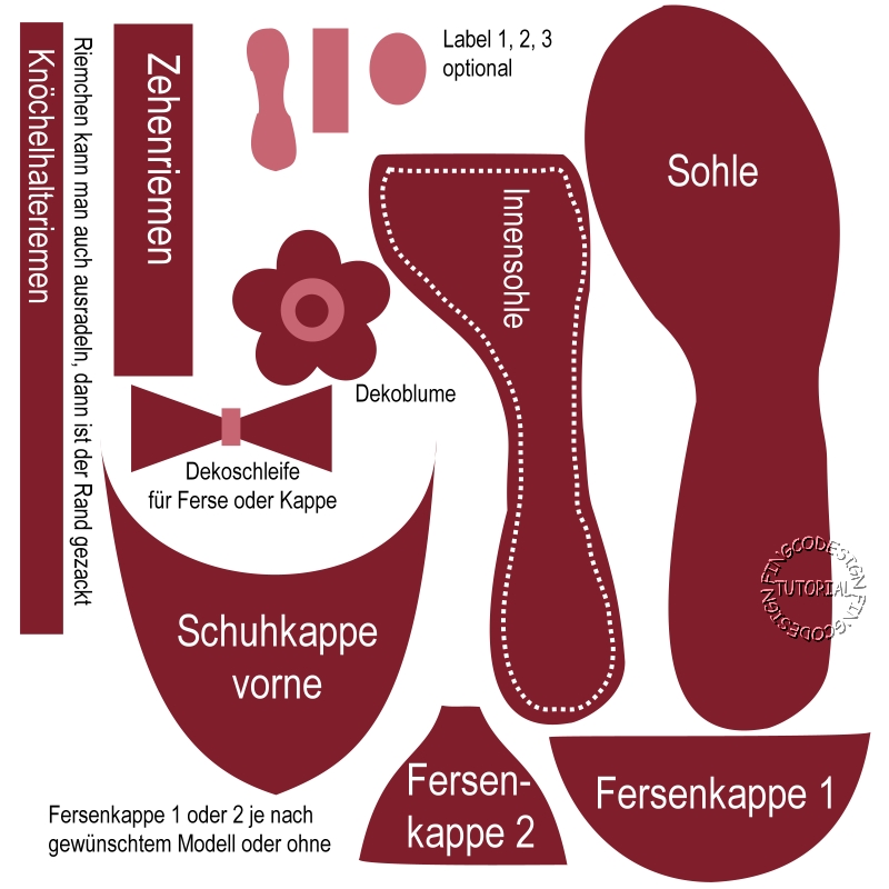 Man kann auch hierbei seiner Fantasie freien Lauf lassen. Schuhe in allen Farben und Formen designen und mit dem Schnittmuster kann man auch herumexperimentieren. Also auf geht´s: Pumps, Sandaletten, Stiefelchen, Slipper, oder wie wäre mal ein orientalischer Hausschuh???