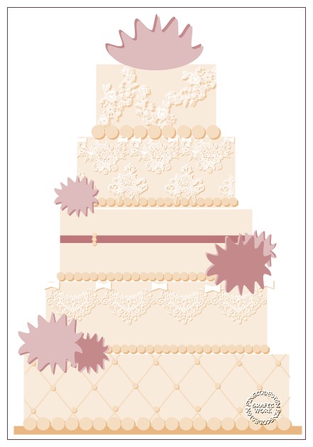 Zu diesem Zeitpunkt habe ich entschieden, dass ich die Torte erst am Ort der Feier zusammensetzen würde. Man hätte sie im Ganzen weder sicher tragen noch im Auto transportieren können. | ||