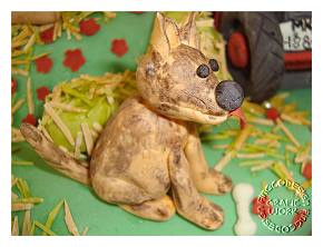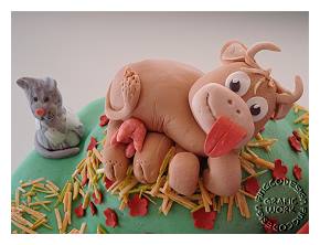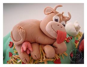 Mein Tortenprojekt im April 2013 war dieseTraktortorte. Erstmals habe ich Modellierfondant hergestellt und fleißig gewerkelt. Zuerst enstand der Traktor. Im www gibt es viele Fotos, an denen ich mich orientieren konnte. Zur Verstärkung habe ich Zahnstocher als Achsen eingeschoben. Nachdem ich mich warm gearbeitetet hatte, habe ich mich an die Tiere gewagt. Ich hatte viel Spaß dabei!
